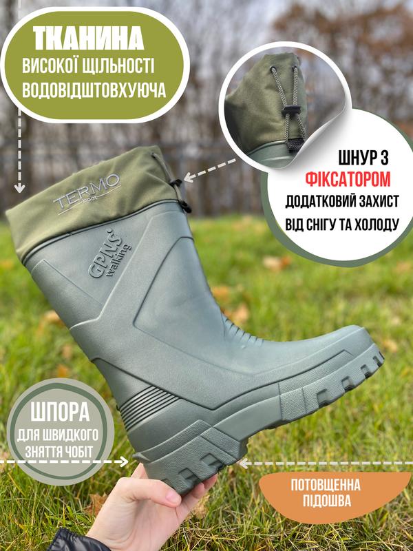 - идеальный вариант для зимней рыбалки, катания на снегоходах и охотыМужские высокие сапоги из пены EVA размеры 42-45. Сапоги утеплены качественным