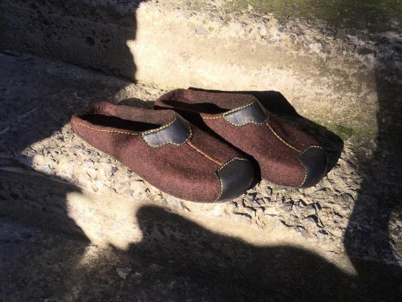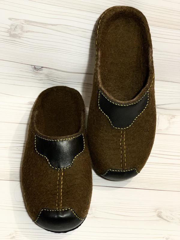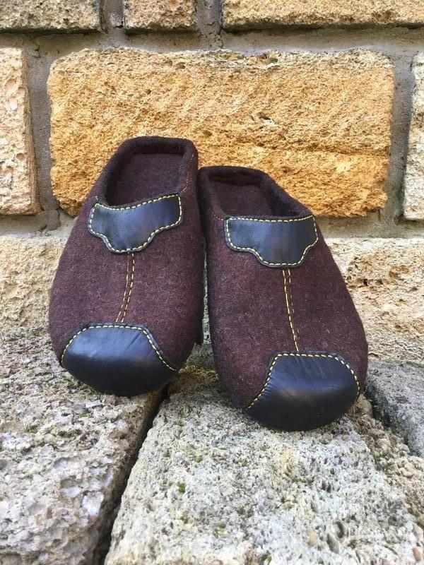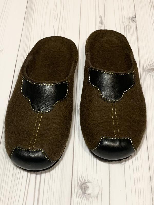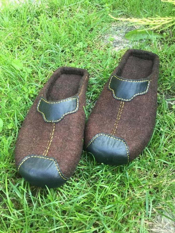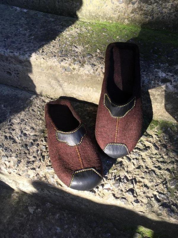Валяные тапочки из натуральной шерсти, декорировано кожей