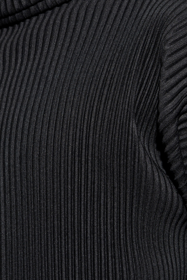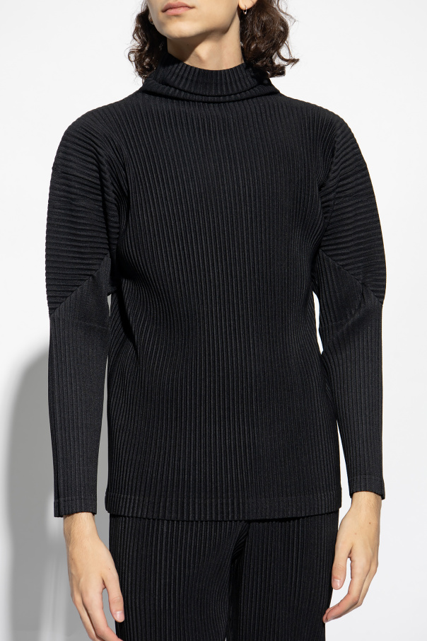 Black pleated turtleneck sweater with long sleeves from Issey Miyake Homme Plisse.