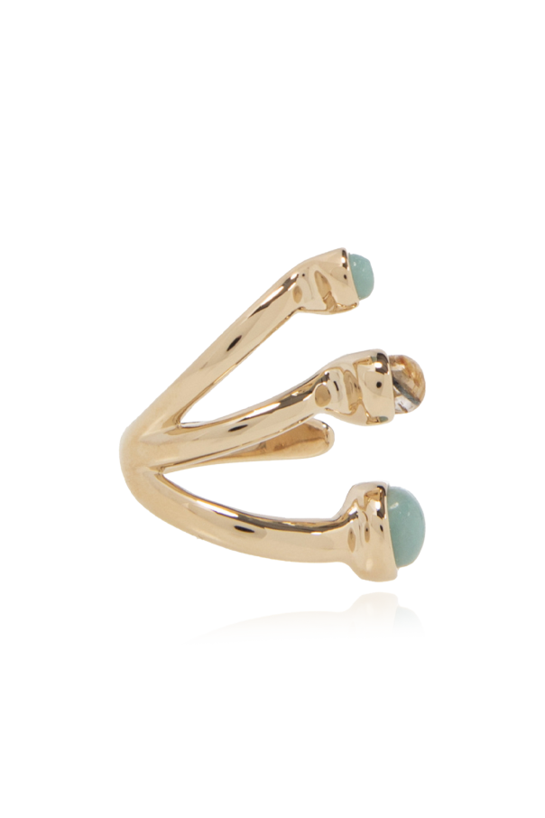 Gold-tone ring from Chloé. Made of brass. Inspired by the Zodiac Aries constellation, this item is embellished with light yellow and blue semi-precious stones, quartz and amazonite.