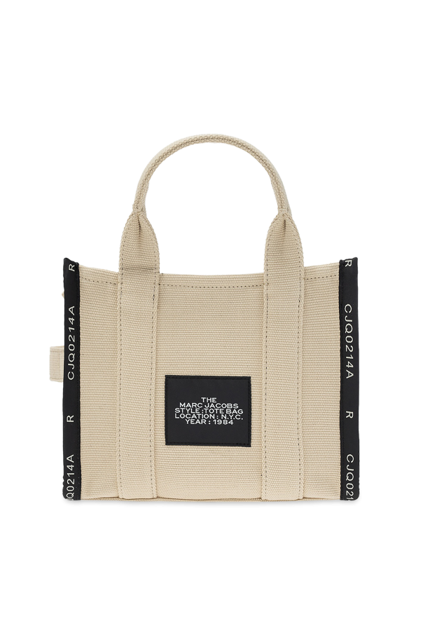 Beige and black shopper bag from Marc Jacobs (The). Fastened with a zip, this design features an embroidered logo pattern in black, two half-round handles, detachable and adjustable shoulder strap as well as one internal compartment.