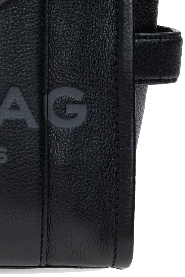 Black ‘The Tote Bag’ shopper bag from Marc Jacobs. Crafted from textured leather, this design features a zip fastening, grey logo print, detachable and adjustable shoulder strap, gold-tone metal hardware and one internal compartment with one slip pocket.
