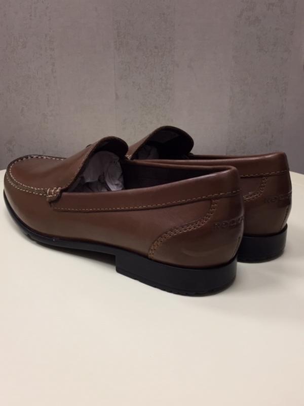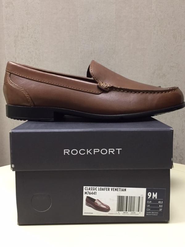 Лофери мокасини чоловічі Rockport, модель Classic Loafer Venetian (M76441). Оригінал. Замовлялися в США. Вказаний американський розмір 9, євро – 42,5. Класичний дизайн. Верх – натуральна шкіра. Колір – коричневий. Антимікробна тканинна підкладка. Пом'якшена устілка з ефектом пам'яті. Устілка не виймається, орієнтовна довжина 28 см, на ногу 27 - 27,5 див. Перевірено! Легка поліуретанова підошва. Нові, в оригінальній коробці.