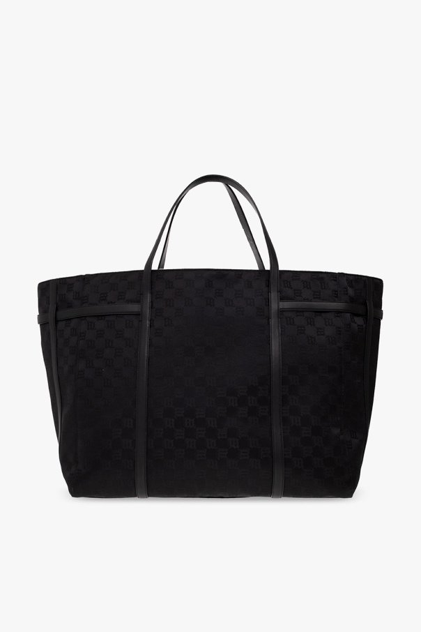 Black shopper bag from MISBHV. Crafted from cotton, this design features a zip fastening, monogram pattern, two half-round handles, silver-tone metal hardware and one internal compartment with two zip pockets.