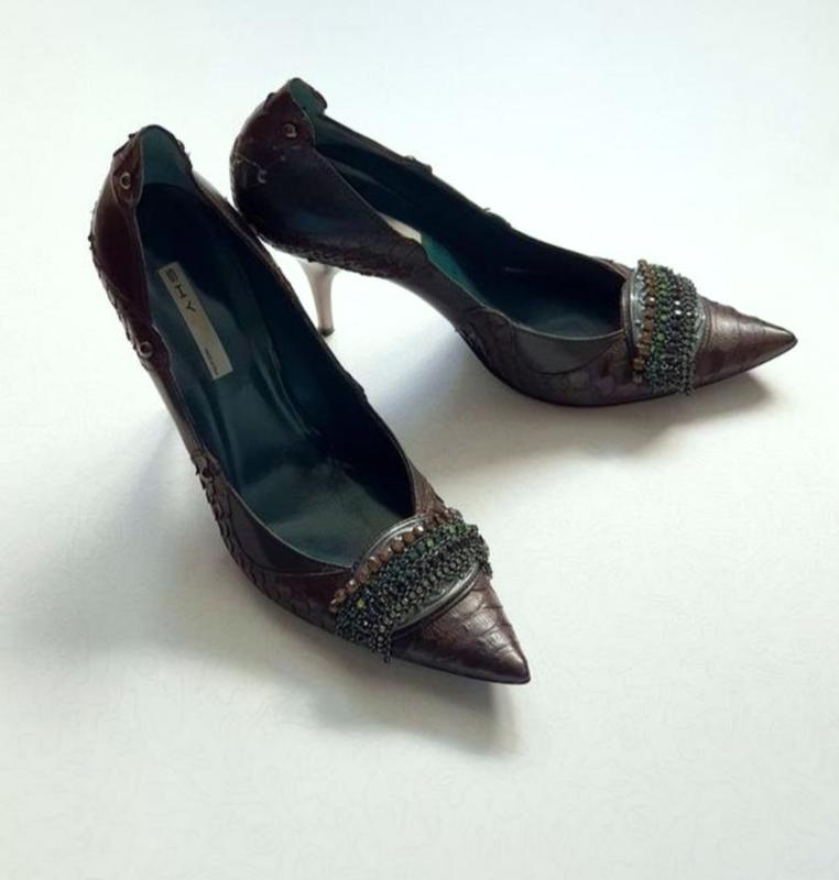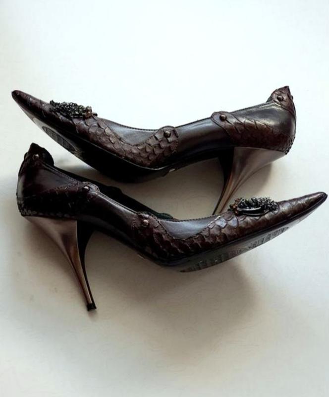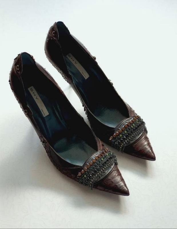 декорировані стразами , ланцюжок, заклепки. Каблук серебристого кольору , довжина каблука 9.5 см.