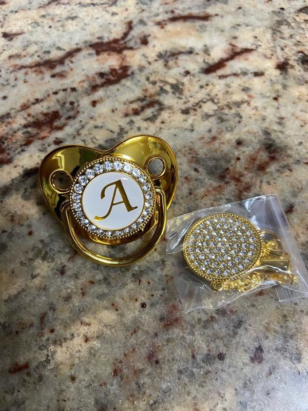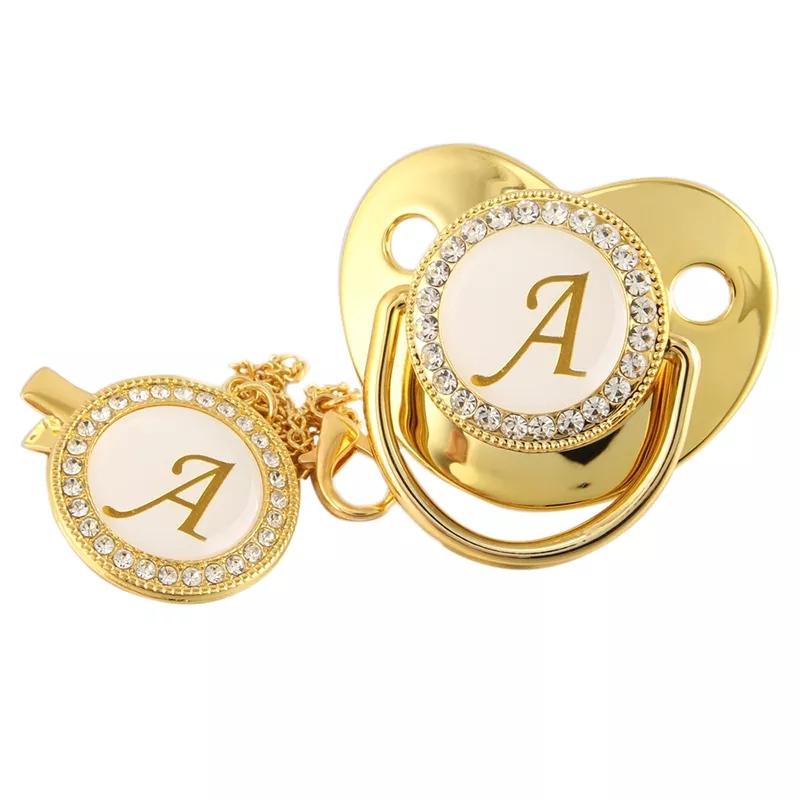 Очень красивый набор для малышей соска + цепочка (держатель) с заглавной буквой имени в стразах.Унисекс.