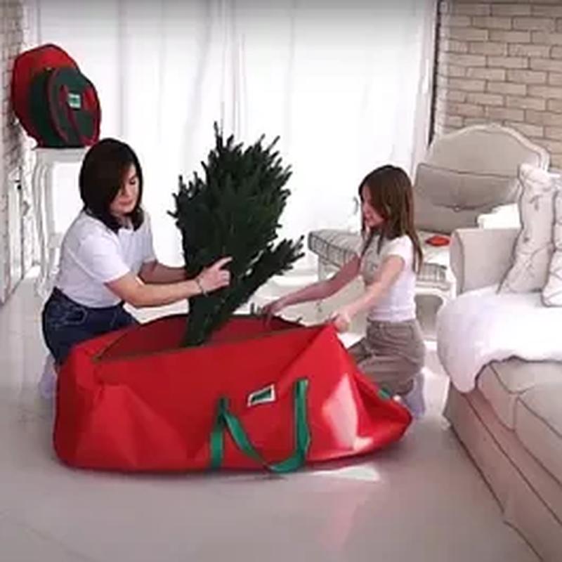 надёжная ручка-петля, которая позволяет подвесить чехол и хранить елку в