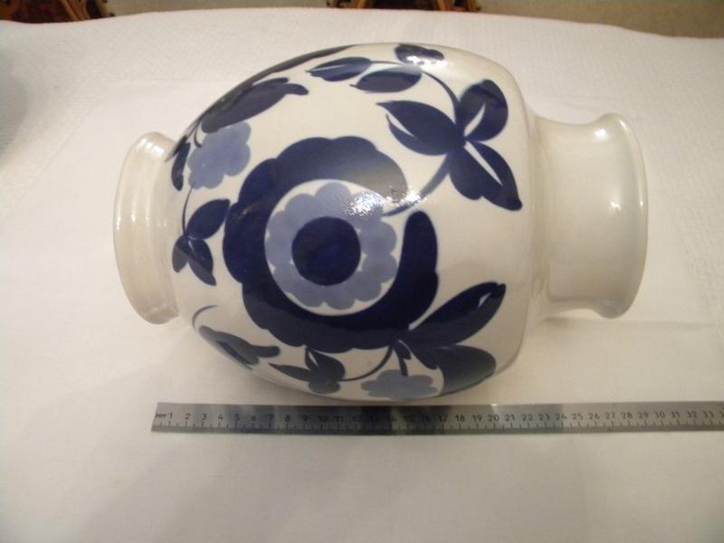 Ваза СССР Славянка Ручная подглазурная Роспись Кобальтом Без скобов и трещин Высота 25.5 см Диаметр верха ( горлышко Ваза) - 11 см. Славянский керамический комбинат История этого мощного керамического предприятия началась в 1893 году, когда трое польских предпринимателей открыли акционерное общество «Дзевульский и Лянге» и купили земельный участок для построения завода вблизи железной дороги в городе Славьянск Харьковской губернии.