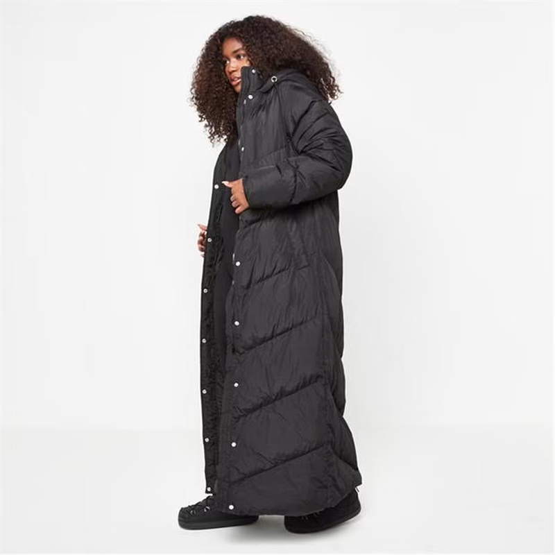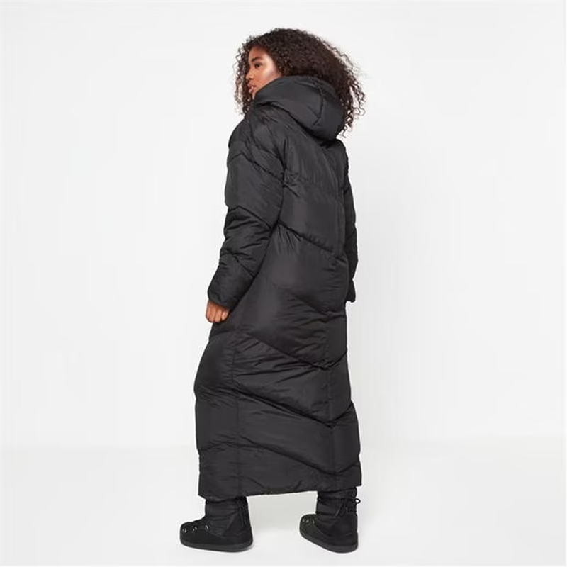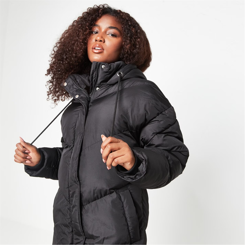 Пальто-пуховик с длинным рукавом и длинным кроем с застежкой на молнию и капюшон Missguided Recycled Longline Chevron Puffer Coat.