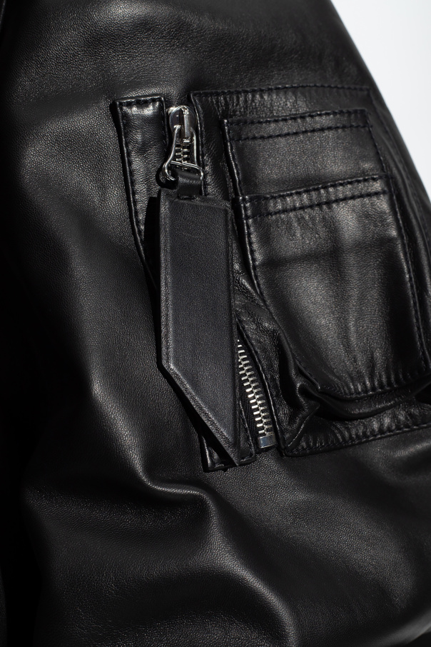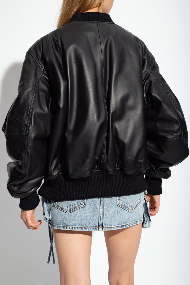 Black ‘Anja’ bomber jacket from The Attico. Crafted from calf leather with an oversize fit, this style fastens with a zip and features two slip pockets on the front, three pockets on the sleeve – one is zipped, and ribbing on the collar, bottom hem and cuffs.