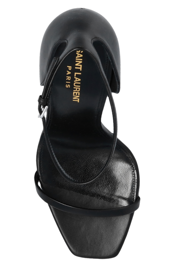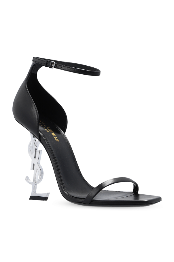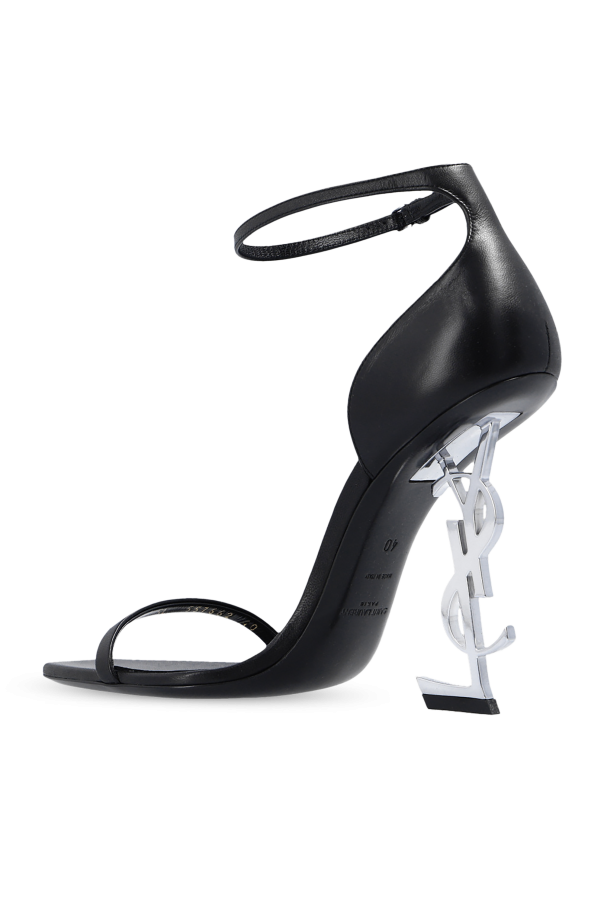 Black 'Opyum' heeled sandals from Saint Laurent. Made of leather, this model features a buckle ankle strap fastening, a black leather sole and a distinctive YSL-shaped heel in silver-tone.
