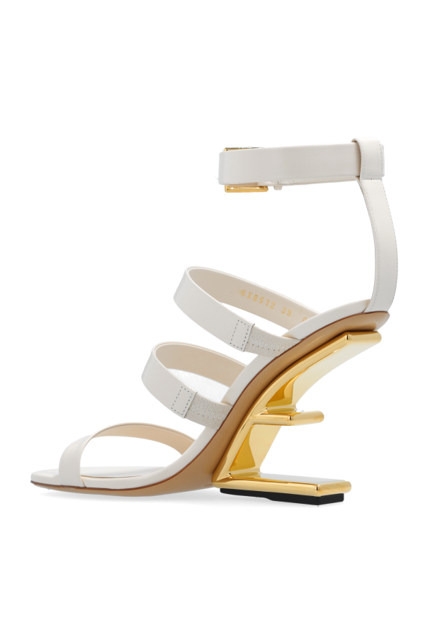 Introducing the Fendi First high-heeled sandals, a testament to the timeless elegance and innovative design that defines the prestigious Fendi brand. Crafted from the finest calfskin leather, these sandals are a symphony of style and comfort. The dominant pristine white hue is complemented by a striking gold metallic heel, ingeniously shaped in the form of an inverted "L", exuding sophistication and a unique aesthetic. The design features three slender straps gracefully crossing the midfoot, a delicate strap over the toes, and an adjustable ankle strap adorned with a buckle closure, ensuring a secure and flattering fit. The opulence of the sandals is further accentuated by the subtle inclusion of the Fendi logo on the ankle strap and insole, confirming the authenticity and luxury status of this exquisite footwear. The interior and sole are also crafted from leather, promising enduring comfort and durability. Whether at a gala or a garden party, the Fendi First sandals are designed to captivate and charm, making an indelible statement of fashion-forward elegance. Why Purchase This Product? Exemplary craftsmanship from premium calfskin leather Unique and elegant gold metallic heel with logo design Adjustable ankle strap for a customizable and comfortable fit Authentic Fendi branding, underscoring luxury and exclusivity Versatile design that complements both formal and casual ensembles