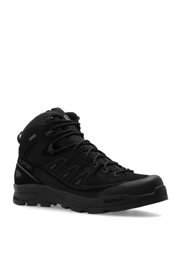 Introducing the X-ALP MID LTR GTX ankle boots, a pinnacle of Salomon's dedication to innovation and quality. These black, mid-cut boots embody a harmonious blend of modern design and robust construction, perfect for those who demand both style and functionality. Crafted from premium leather and synthetic materials, these boots offer exceptional durability and weather resistance. The distinctive stitching and reinforced toe and heel ensure superior protection, while the Gore-Tex technology guarantees waterproof and breathable performance. The secure lacing system provides a customized fit, ensuring stability and comfort on diverse terrains. The thick sole, adorned with a pronounced tread pattern, delivers unparalleled grip, making these boots an ideal choice for challenging outdoor adventures. Adorned with the iconic Salomon logo and "X-ALP" inscription, these boots are not only a testament to the brand's rich heritage but also a statement of contemporary athletic elegance. Why Choose This Product? Superior Materials: Premium leather and synthetic exterior for longevity and weather resistance. Advanced Protection: Reinforced toe and heel for enhanced safety. Optimal Fit: Robust lacing system for stability and comfort. Exceptional Grip: Thick, treaded sole for excellent traction. Innovative Technology: Gore-Tex for waterproof and breathable performance.