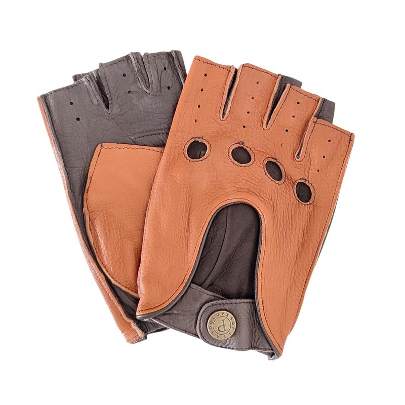 Мужские кожаные беспалые перчатки коньячного цвета - это идеальный выбор для