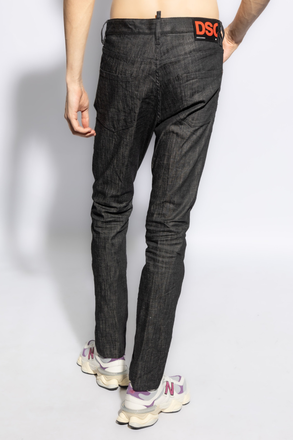 Introducing the quintessence of denim refinement, the 'Cool Guy' Jeans by the esteemed Dsquared2. Crafted with an eye for sartorial perfection, these jeans merge the durability of premium quality denim with a touch of stretch for unparalleled comfort. The profound black hue, subtly accentuated with a natural, distressed pattern, evokes an air of understated sophistication, making them a versatile addition to any gentleman's wardrobe. The classic five-pocket design, inclusive of a quaint coin pocket, is both functional and stylish, while the iconic red tab adorned with the white "DSQUARED2" inscription on the front pocket boldly signifies the luxury brand's identity. A conventional metal button and zipper fastening ensure a secure and seamless fit. Meticulously crafted, these jeans feature a straight fit with a slight taper towards the hem, enhancing the silhouette with a touch of modernity. The absence of overt embellishments or flamboyant details speaks to a design philosophy that values subtle elegance and timeless appeal. Why Purchase These 'Cool Guy' Jeans? Exemplary craftsmanship from high-quality denim, offering durability and comfort. Subtle yet striking distressed pattern for an effortlessly stylish, aged look. Signature DSQUARED2 branding for an unmistakable touch of luxury. Practical five-pocket design with a sleek, tapered fit for a contemporary edge. Impeccable attention to detail in every stitch, button, and rivet, underscoring an exclusive character.