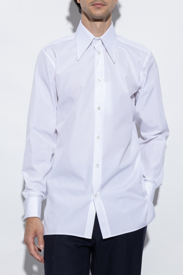 White shirt from Maison Margiela. Made of cotton, this design features button fastenings, side vents and long sleeves with cufflink cuffs.