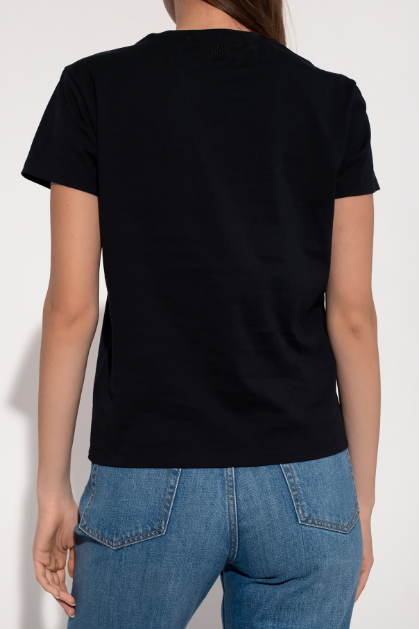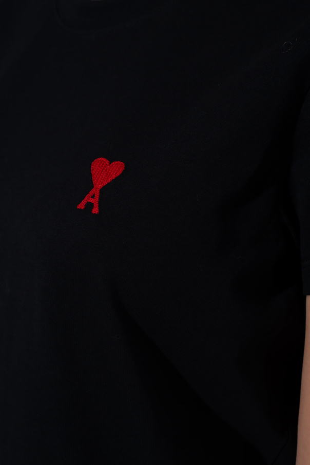 Black crewneck T-shirt from Ami Alexandre Mattiussi. Crafted from organic cotton, this garment features a red logo embroidery on the front, black logo at the back and ribbed crew neck.