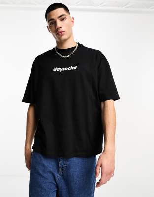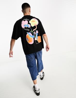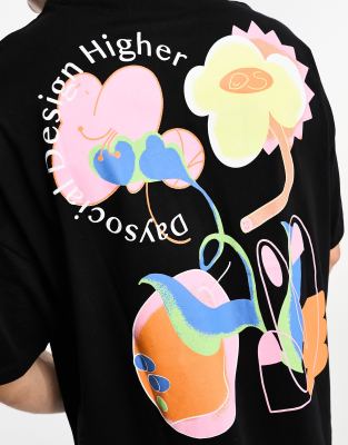 ASOS Daysocial unisex oversized t-shirt in heavyweight 220gsm black with abstract floral back print