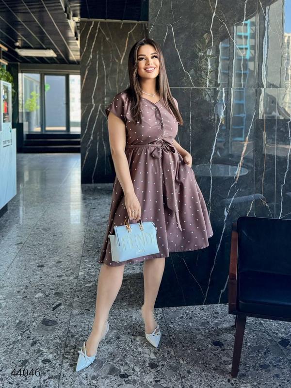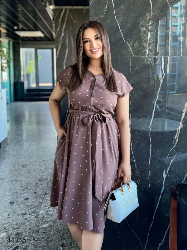Сукня в дрібний горох. Йде під пояс та гарно підкреслить талію.
