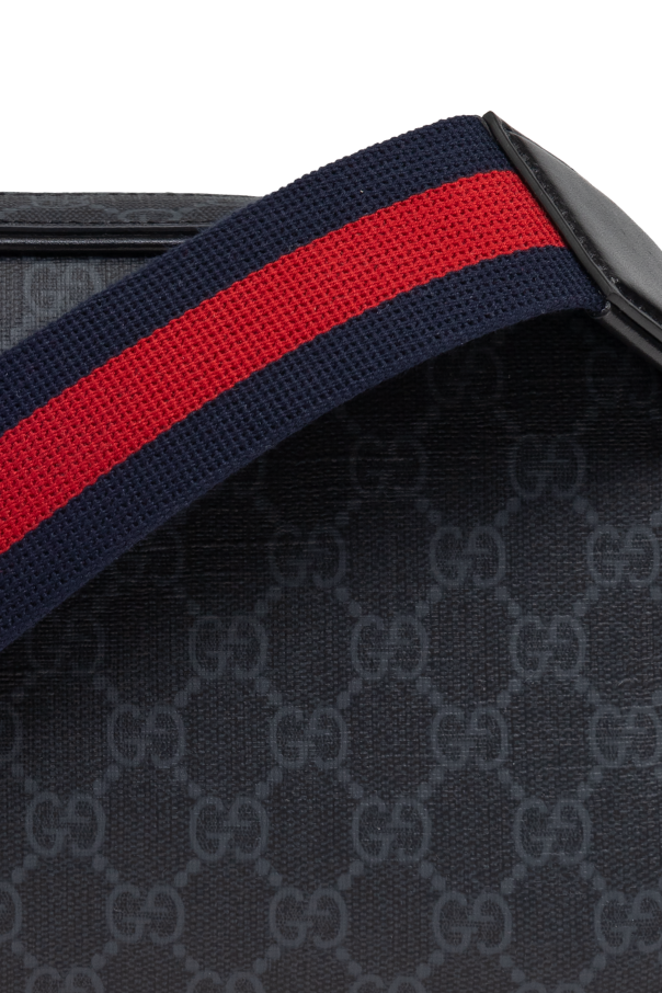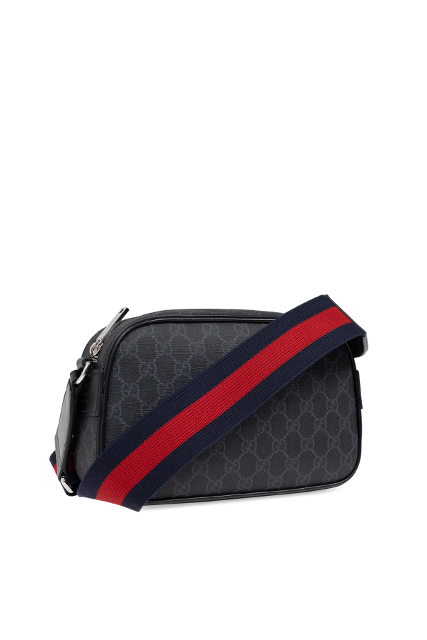 Introducing the epitome of sophistication - the Monogram Shoulder Bag from the esteemed house of Gucci. Crafted with an eye for elegance, this rectangular bag with its gently rounded edges exudes luxury at first glance. The outer layer, a harmonious blend of Calfskin Leather and 'GG Supreme' Canvas, is adorned with the iconic monogram pattern, a hallmark of Gucci's luxurious lineage. The bag's adjustable shoulder strap, featuring the distinctive red and navy stripes, not only adds a pop of color but also ensures a comfortable carry, tailored to your preference. The presence of the brand's logo on the strap elevates its status to a recognizable emblem of luxury. Its main compartment, secured with a metal zipper, reveals a sleek, dark interior with a slip pocket, marrying functionality with discretion seamlessly. Why Purchase This Product? Exclusive Design: The repetitive monogram pattern set against a black and gray palette guarantees a distinguished appearance. Quality Craftsmanship: Meticulously constructed with premium materials including Calfskin Leather and 'GG Supreme' canvas. Practical Elegance: A spacious main compartment with a zipper closure and an internal slip pocket cater to your organizational needs while maintaining a sleek profile. Adjustable Comfort: The customisable strap adorned with Gucci's signature stripes offers ease of wear, making it an ideal choice for the discerning gentleman on the go.