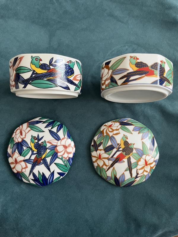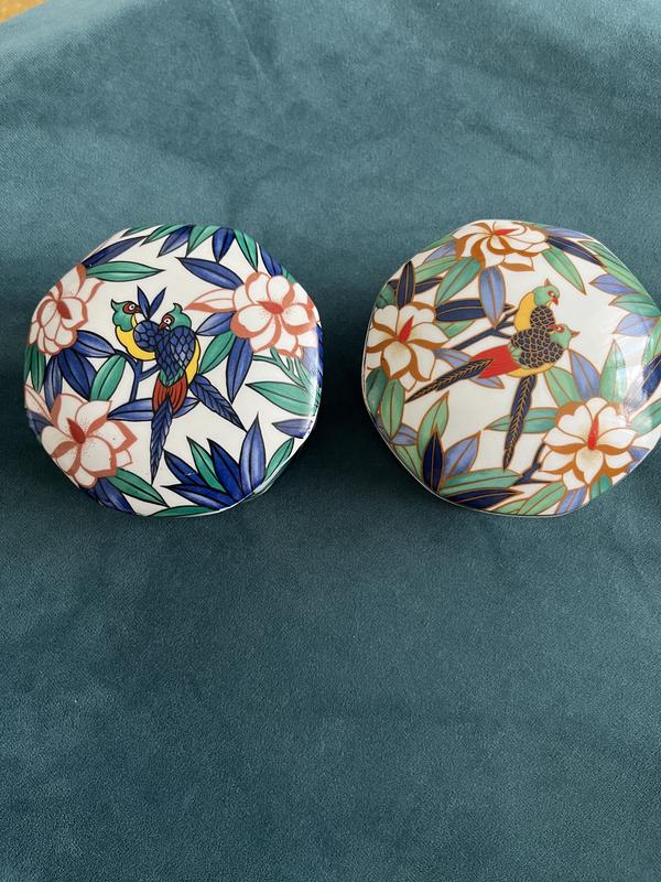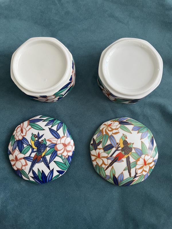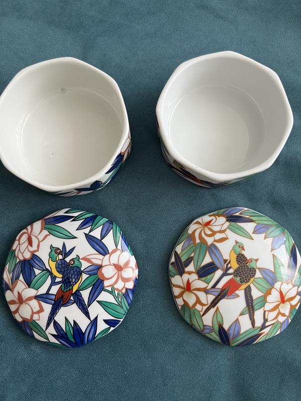 шкатулка Takahashi Tropicale с изображением тропических птиц, фарфор, диаметр 10 см, высота 4 см, в наличии 2 ед