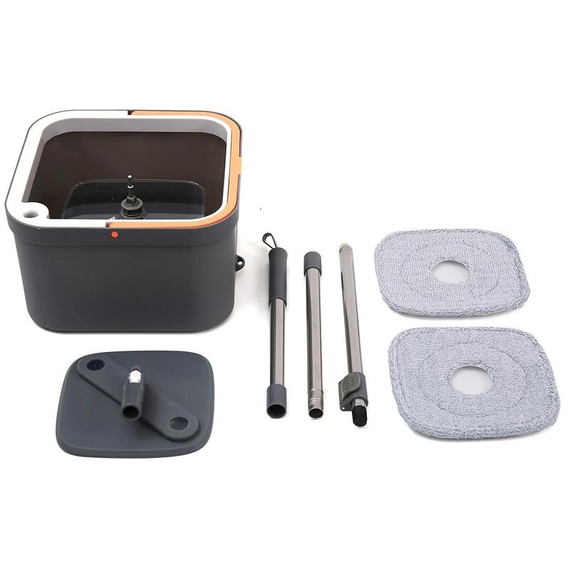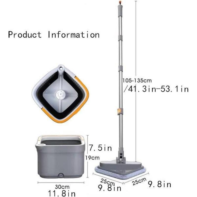 Головка швабры имеет квадратную конструкцию, без слепых зон при сборке. Квадратные ведра легче разместить в углу для хранения, они также более устойчивы к опрокидыванию. Регулируемая ручка швабры выполнена из нержавеющей стали, оснащена шарниром, вращающимся на 360 градусов и позволяющим хорошо очищать швы и щели, легко удаляя пыль и пятна с каждого уголка.