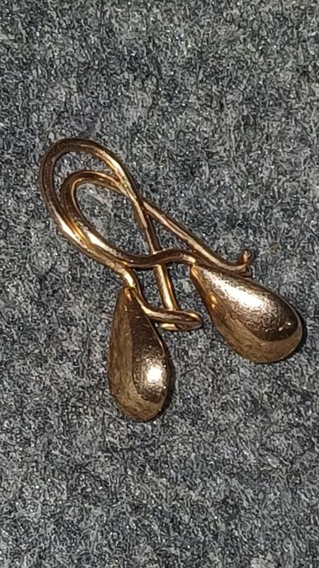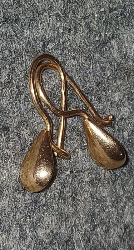 как новые. пробы есть на фото видно. в форме капельки. вес общий 2 сережек 2 грама на весах кухоных пограмовым. точный вес возможно 2 лишним, к сожалениию в городе нет возможности сделать оценку изделия в связи с боевыми действиями ломбарды и ювелирки закрыты. достались от бабушки. нужны деньги, решила продать. цена 5500 гривен без торга.