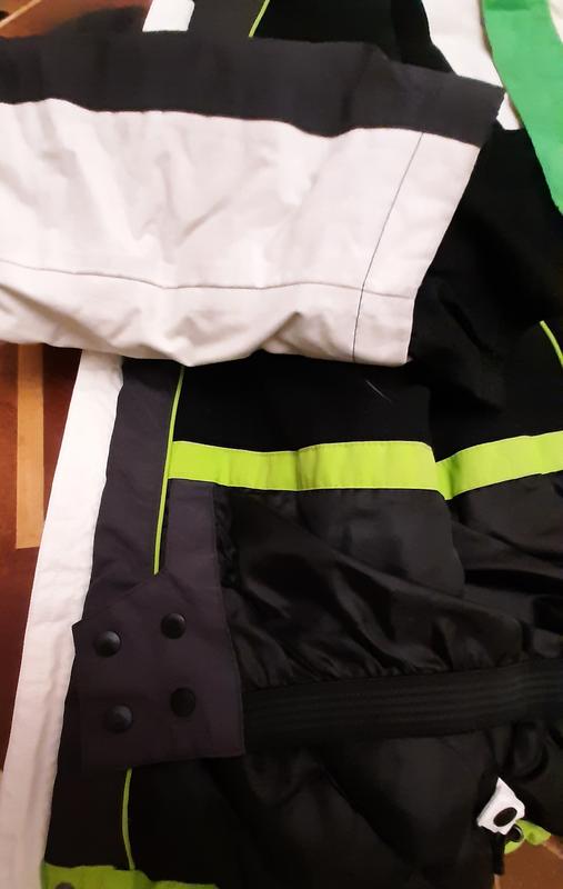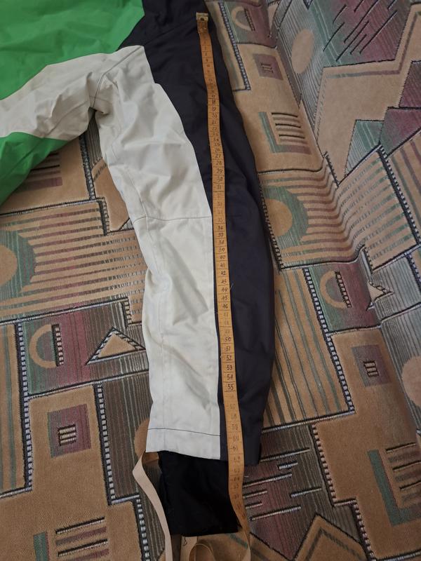 Очень удобная легка и теплая лыжная куртка из водонепроницаемого материала. Размер S - M. Одевалась три раза. В стирке не была.