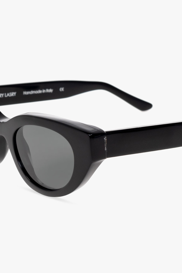 Black sunglasses from Thierry Lasry x Reede Cooper®. This pair has cat-eye frames and dark grey lenses with 100% UV protection. Hand-crafted in France. Comes with a case.