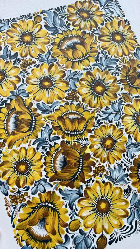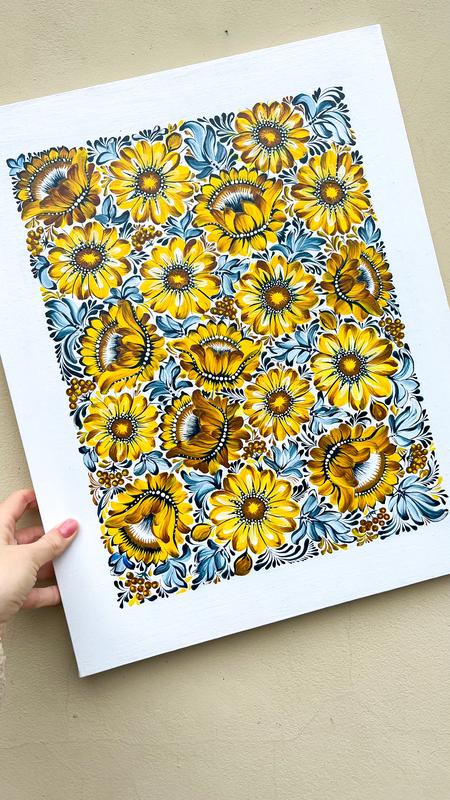 Картина петриковская роспись на холсте с подрамником 50*40 см, акрил, финишно покрыта лаком