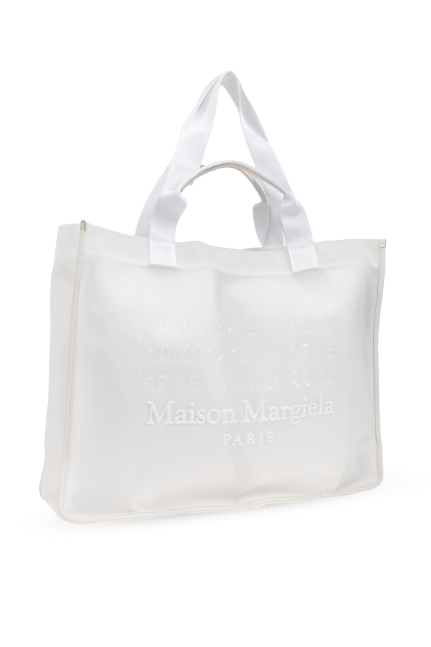 Introducing the Cabas Large shopper bag by the illustrious Maison Margiela, a paragon of sophisticated design and utilitarian elegance. This exquisite bag boasts a rectangular, spacious silhouette, making it an ideal companion for daily use. Crafted from resilient white material, the Cabas Large is as durable as it is stylish. The interior is elegantly lined in light gray, providing a refined contrast to its pristine exterior. The front of the bag is adorned with embossed numbers, a distinctive hallmark of Maison Margiela, alongside the subtly elegant "Maison Margiela Paris" inscription, enhancing its luxe appeal. Functionality meets fashion with two broad, comfortable white handles and a secure magnetic clasp closure. The capacious interior features an additional pocket, offering both ample space and practicality. Why Choose This Product? Unmistakable Maison Margiela design with iconic numerical embossing Spacious and functional, perfect for everyday use Made from durable, easy-to-clean white material Comfortable to carry with wide, sturdy handles Secure magnetic clasp for easy access and added security Timeless unisex design, suitable for all