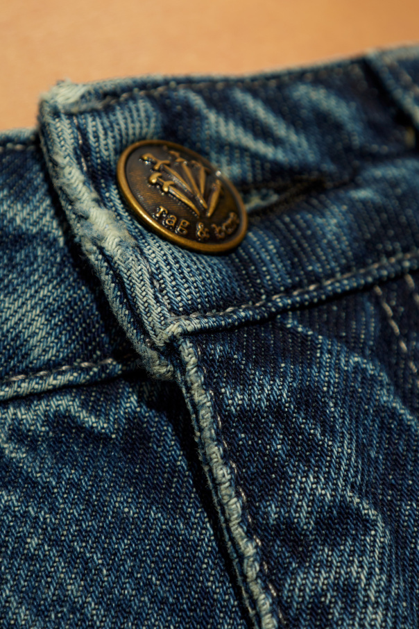 Introducing the 'Charlie' jeans by renowned designer Rag & Bone, a testament to modern elegance and relaxed sophistication. Crafted from 100% durable cotton denim, these wide-leg jeans exude a sense of effortless chic with their loose fit from hip to hem. The myriad shades of blue, accented with artful fading and light distressing, encapsulate the denim's timeless appeal and casual luxury. The jeans feature a classic five-pocket design, including two front pockets, a small coin pocket, and two rear pockets, ensuring practicality without sacrificing style. A distinctive metal button, adorned with the Rag & Bone logo, serves as a subtle yet significant mark of quality and designer pedigree. Additionally, standard belt loops accommodate personal styling with your favorite belt. Precision stitching and harmonious thread color amplify the jeans' aesthetic, complemented by double stitching along the legs and around the pockets for reinforced durability. The 'Charlie' model, presented in a deep navy hue, is secured with a zipper and button closure, making it a versatile piece for any wardrobe. Why Purchase the 'Charlie' Jeans? Exclusive Design: Unique wide-leg cut for a modern, relaxed silhouette. High-Quality Material: Made from 100% durable cotton denim for lasting wear. Iconic Branding: Signature Rag & Bone metal button showcases designer appeal. Versatile Styling: Perfect for pairing with a variety of tops and accessories. Reinforced Construction: Precision stitching and double seams offer enhanced durability.