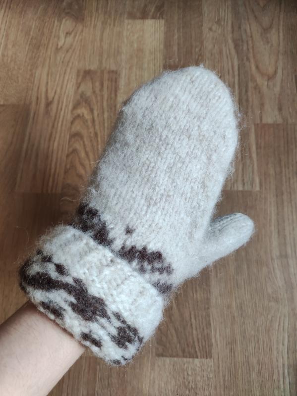 Очень милые вязаные теплющие рукавицы из настоящей шерсти.