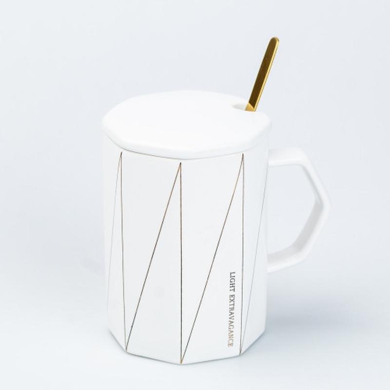 Чашка керамічна 400 мл Light Extravagance з кришкою та ложкою, білий