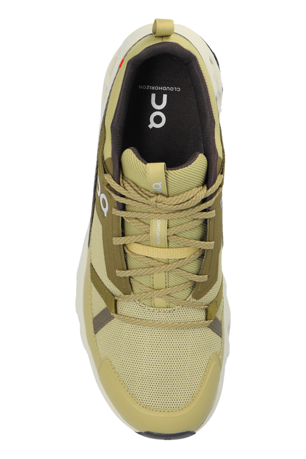 Introducing the exquisite Cloudhorizon sports shoes from the exclusive collection by renowned designer On Running. These sneakers epitomize the perfect amalgamation of style and performance. The low-top silhouette with its classic shape ensures unrestricted movement. Crafted from a meticulous combination of synthetic material and mesh, the upper offers superior ventilation and comfort. The intricate pattern features panels in varying shades of green and beige, exuding a sophisticated aesthetic. The outsole, made of resilient white foam with black accents, delivers advanced cushioning and a contemporary look, seamlessly blending functionality with modern design. The shoes proudly display the On logo in white on the side and the name Cloudhorizon on the tongue, while a convenient pull-loop at the back facilitates easy wear. Why Choose This Product? Exceptional blend of style and functionality. Superior ventilation with synthetic and mesh materials. Advanced shock absorption technology in the outsole. Classic low-top design for unrestricted movement. Elegant color palette with green, beige, and black hues.