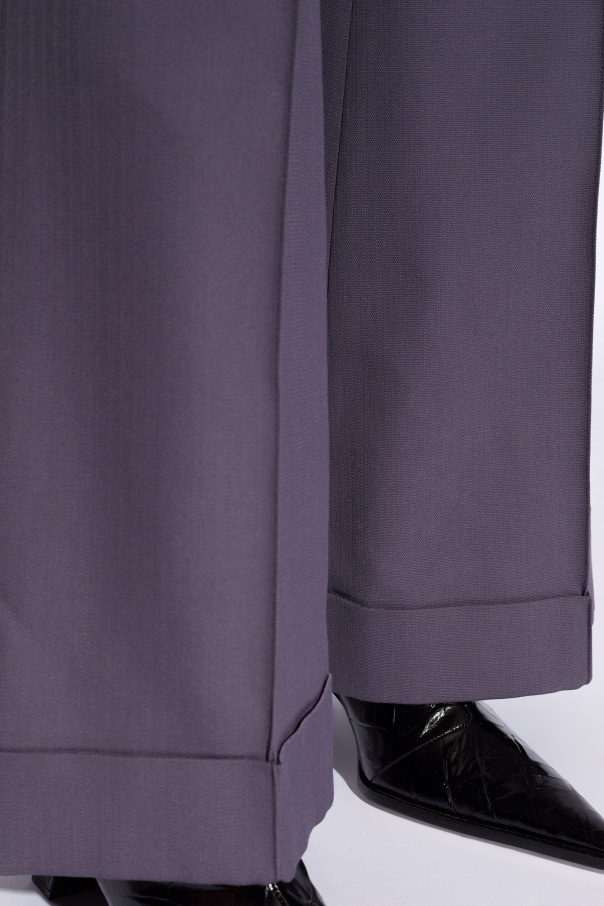 Blueish-grey pleat-front trousers from Acne Studios. Made from a wool blend, this pair falls with relaxed-fitting legs and features a zip fly with buttons, four slip pockets and turn-up cuffs.