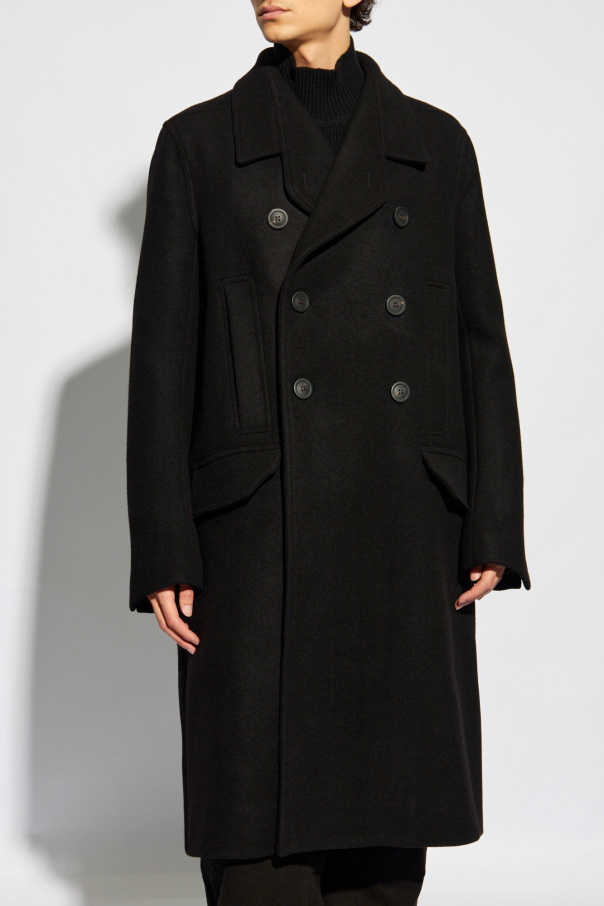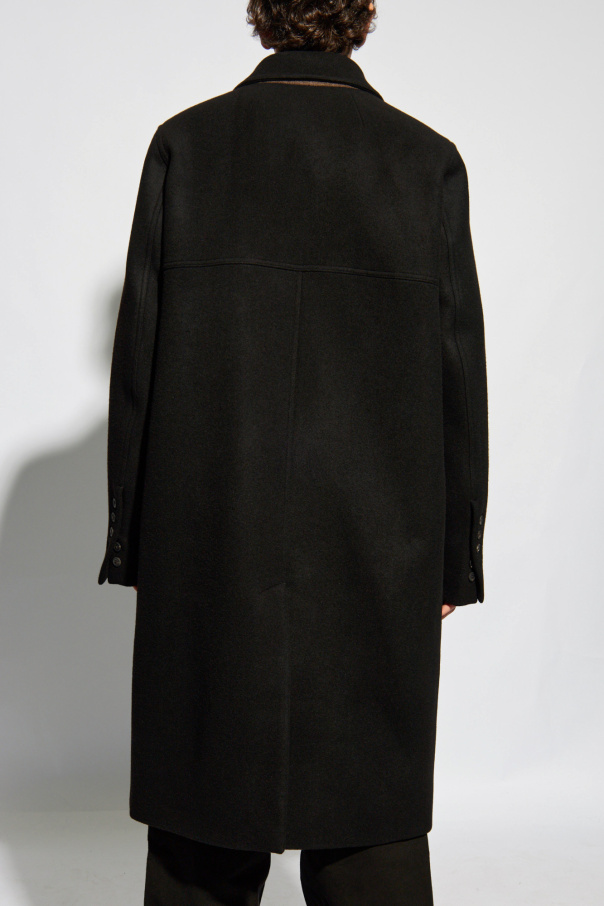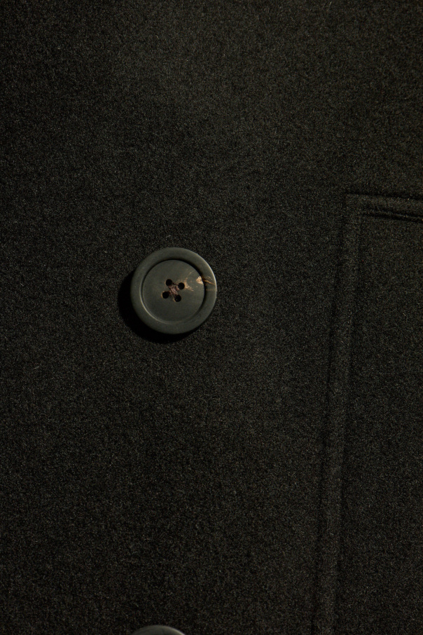 Introducing the Officer Coat from the exclusive POLO collection by Rick Owens, a masterpiece that redefines the essence of sophisticated outerwear. This coat, presented in an alluring black hue, commands attention and respect through its impeccable design and the luxurious quality of its materials. Crafted from the finest wool or its blend, the fabric's dense and delicate texture is palpable, offering not only unparalleled warmth but also a soft, inviting touch. The coat's silhouette, reminiscent of military officer's attire, falls below the knees in a straight, slightly tailored shape that enhances the wearer's stature while maintaining an air of enigmatic allure. The double-breasted front, adorned with buttons that subtly match the coat's color, adds a layer of elegance and formality, while the classic lapels and four slip pockets blend functionality with fashion. The back of the coat is gracefully simple, with a horizontal seam that subtly reinforces its shape, ensuring the coat drapes beautifully over any ensemble. Why Purchase This Coat? Exclusivity and elegance of the POLO by Rick Owens collection. Luxurious, high-quality wool construction for warmth and comfort. Unique, sophisticated design with a military-inspired silhouette. Functional features including a double-breasted closure and four pockets. Timeless style that enhances any wardrobe with its refined aesthetic.