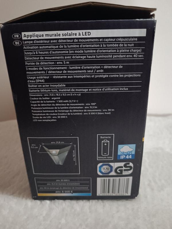 Світло вмикається автоматично, коли надворі темніє, і випромінює 15 люменів світла, тож передні чи задні двері завжди будуть освітлені. Якщо виявлено рух, світло почне світити яскравіше, а потім вироблятиме 75 люменів.Що в коробці?