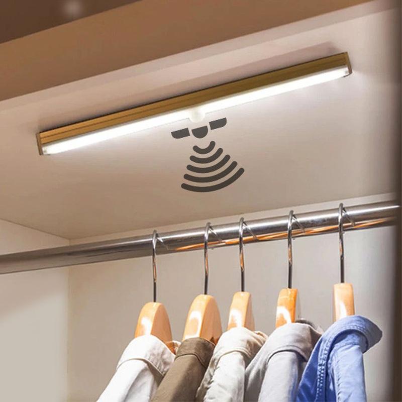 гардероба.Довгий білий світильник реагує на рух людини і автоматично вмикається, а після