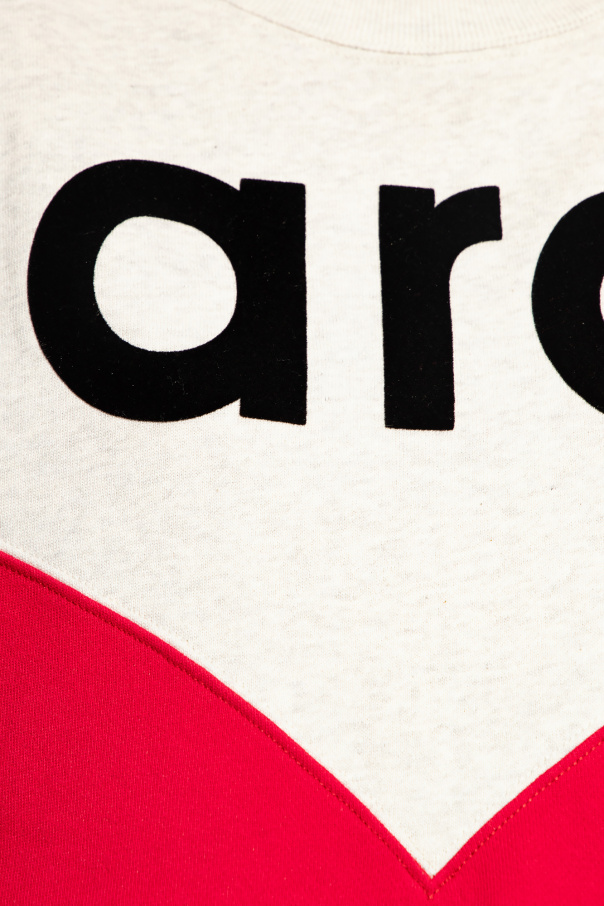 Grey and pink ‘Houston’ crewneck sweatshirt from MARANT. Made of cotton, this style showcases a velvet-flocked logo graphic in black, long sleeves and ribbed trims on the collar, bottom hem and cuffs.