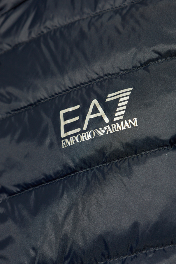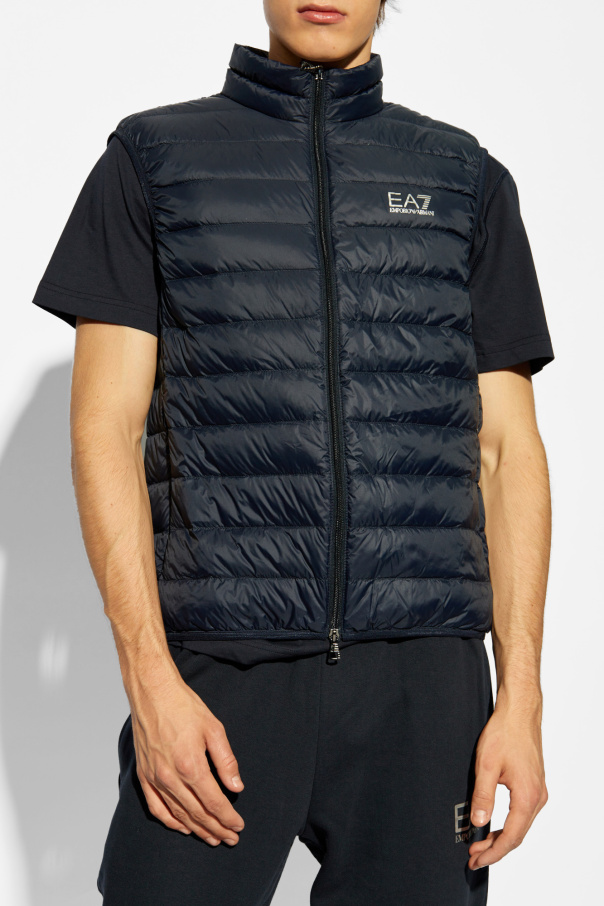 Introducing the epitome of sophistication and warmth, the EA7 Emporio Armani Quilted Gilet. Crafted from a lustrous, quilted fabric, this navy gem is designed to offer both elegance and functionality. Its sleek, sleeveless design is complemented by a high-neck collar, ensuring warmth and style are never mutually exclusive. The gilet's shell and lining are made of 100% Polyamide, providing a lightweight yet durable wear, while the filling - a blend of 80% down and 20% feather - guarantees unparalleled comfort and insulation. The piece is adorned with the iconic white EA7 logo on the chest, signifying its belonging to Emporio Armani's exclusive sportswear collection. Despite its sporty essence, the gilet's polished finish and exquisite tailoring make it a versatile addition to any wardrobe, effortlessly bridging the gap between casual and refined attire. Why Purchase this Product? Luxurious Material: High-quality polyamide coupled with a down-feather blend for warmth without the bulk. Exclusive Design: Featuring the prestigious EA7 Emporio Armani logo, symbolizing sophistication. Versatility: Perfect for layering, this gilet transitions smoothly from outdoor adventures to urban explorations. Unique Features: A double-ended zipper closure for ease of use and a polished look, alongside its distinctive quilted texture.