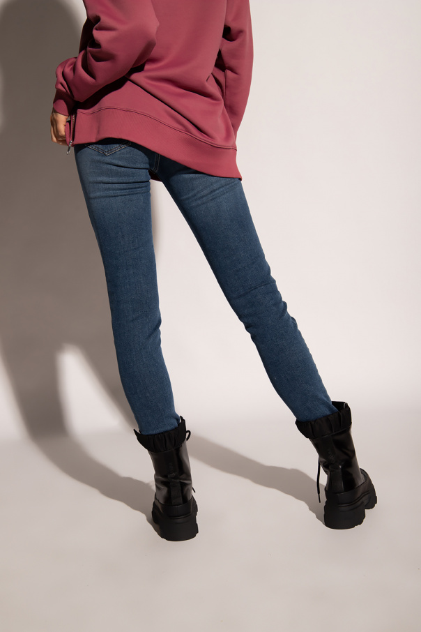 Blue ‘D-Ollies’ jeans from Diesel. Falling down with tapered legs, this pair features a zip fly with a top button, classic five pockets and a logo-printed patch on the back.