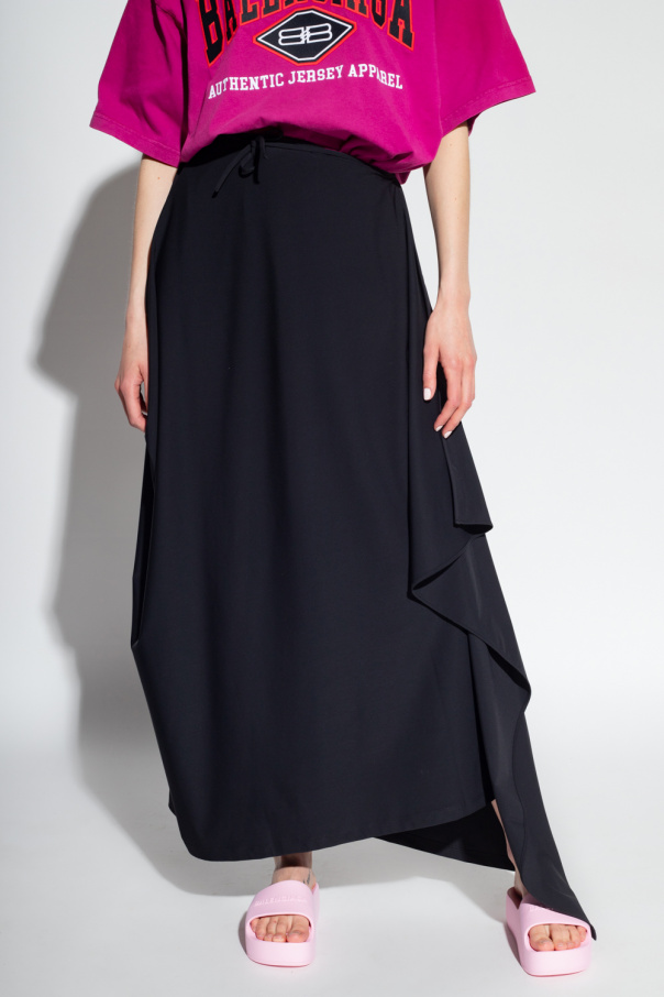 Black pareo from Balenciaga. This pair features an elastic waistband, a waist tie and logo detail in white.