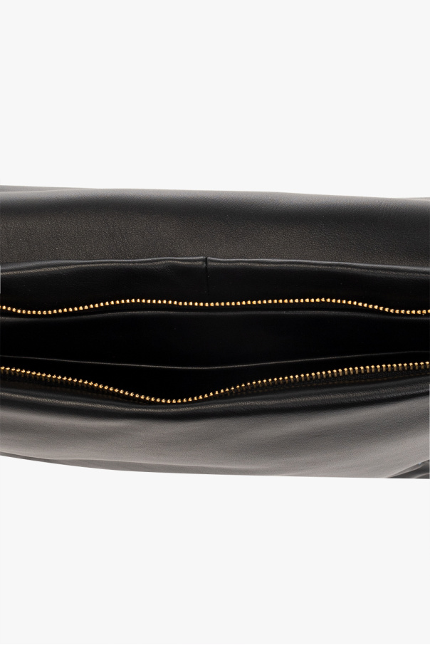 Black ‘Devotion Medium’ shoulder bag from Dolce & Gabbana. Crafted from lamb leather with a metallic finish, this design secures with snaps and showcases branded heart-shaped hardware with pearly details, a detachable chain and leather shoulder strap, gold-tone metal elements and one internal compartment with one zip pocket and one slip pocket.