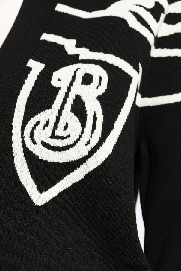 Introducing the epitome of sophistication and contemporary design: the Burberry Logo Cardigan. Crafted with a discerning blend of materials, this cardigan boasts an exquisite composition of 96% Cotton, 3% Polyamide, and 1% Elastane, ensuring both comfort and a flattering fit. The sleek black hue serves as a canvas to the abstract white patterns and contours, including the iconic Burberry logo shielded on the left chest, manifesting a blend of elegance and brand identity. This tapered piece features long sleeves and is secured with buttons at the front, creating a seamless silhouette that reaches just around the hip line. The distinct white pattern continues across the back, adding a touch of intrigue to the garment's overall allure. Whether paired with casual attire or as an elegant overlay, this cardigan transitions effortlessly, affirming its versatility. Why Purchase This Product? Exclusively designed by Burberry, a testament to luxury and high fashion. Meticulously crafted from high-quality materials, offering both durability and comfort. Features a unique abstract pattern and the distinguished Burberry logo, enhancing its exclusivity. Versatile design suitable for both casual and sophisticated ensembles.