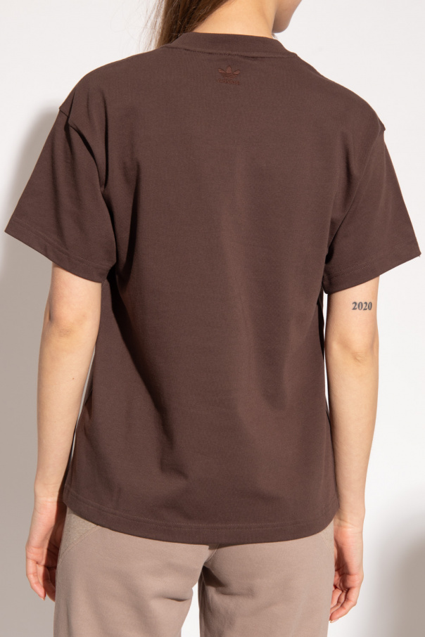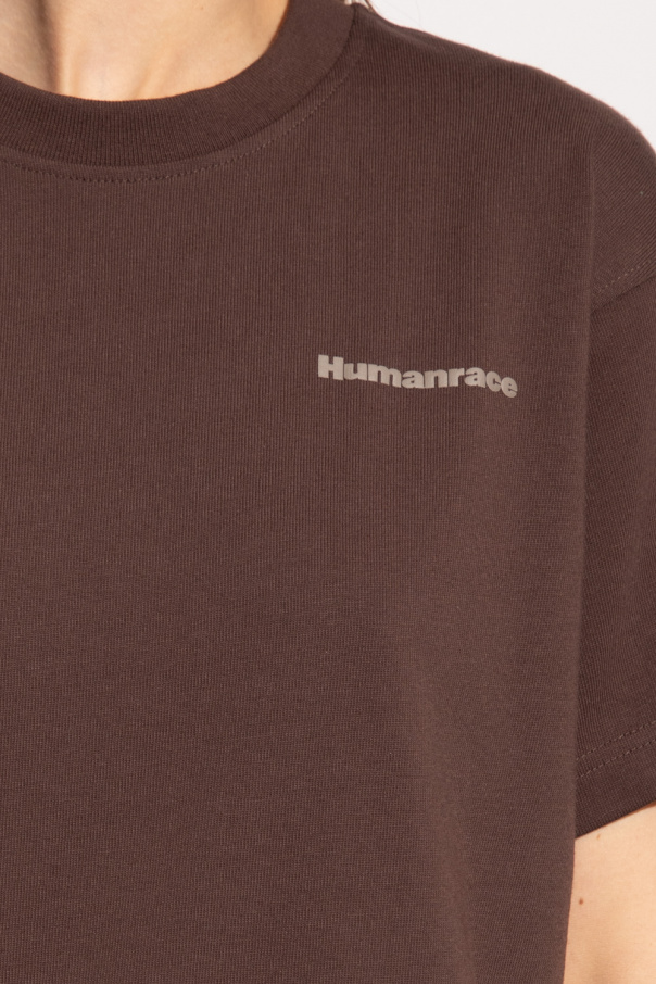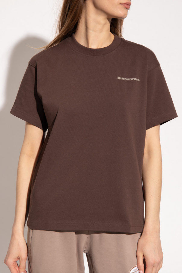 Brown crewneck T-shirt from ADIDAS Originals x Human Race. Made of cotton, this style showcases short sleeves, an elasticated collar and a graphic print on the front and Trefoil logo embroidery at the back.