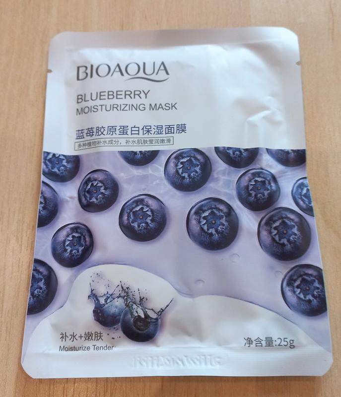 Тканинна маска для обличчя BioAqua з екстрактом чорниці продукт з яскраво вираженим впливом антиэйдж. Чорниця один з кращих антиоксидантів відомих людству. Вона перешкоджає процесу окислення, який і є основною причиною в'янення і старіння шкіри. Ця маска стане незамінним помічником для всіх жінок, які бажають максимально продовжити молодість шкіри і перешкодити прояву вікових змін як можна довше. Спосіб застосування: На очищену, підготовлену шкіру, маска наноситься таким чином, щоб тканина щільно прилягала до шкіри, без бульбашок повітря. Час витримки маски - 15-20 хвилин. Після цього зніміть маску і дайте вбратися залишкам есенції.