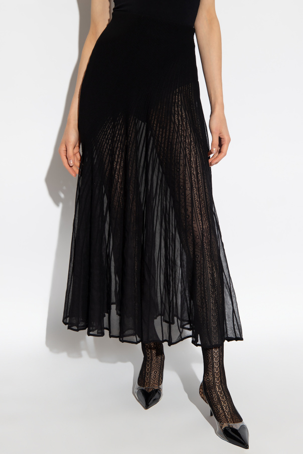Black ribbed skirt with an elastic waistband from Alaia. Made of knit fabric with silk inserts.
