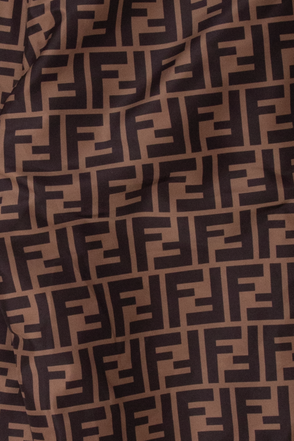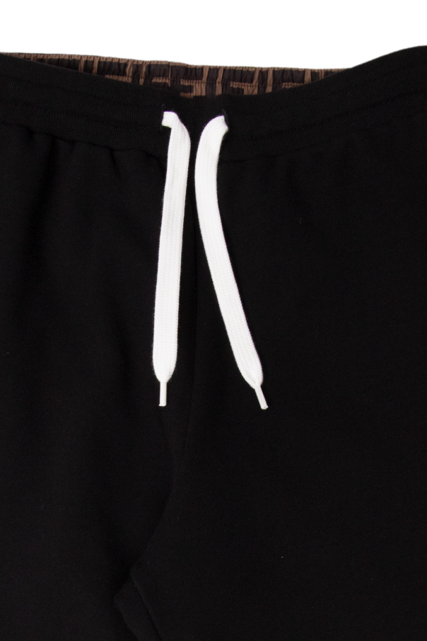 Reversible trousers from Fendi Kids. This pair features a drawstring waist and elasticated cuffs. One side is made of black cotton and showcases a white logo and three slip pockets. The other side is embellished with a brown monogram and features two slip pockets.