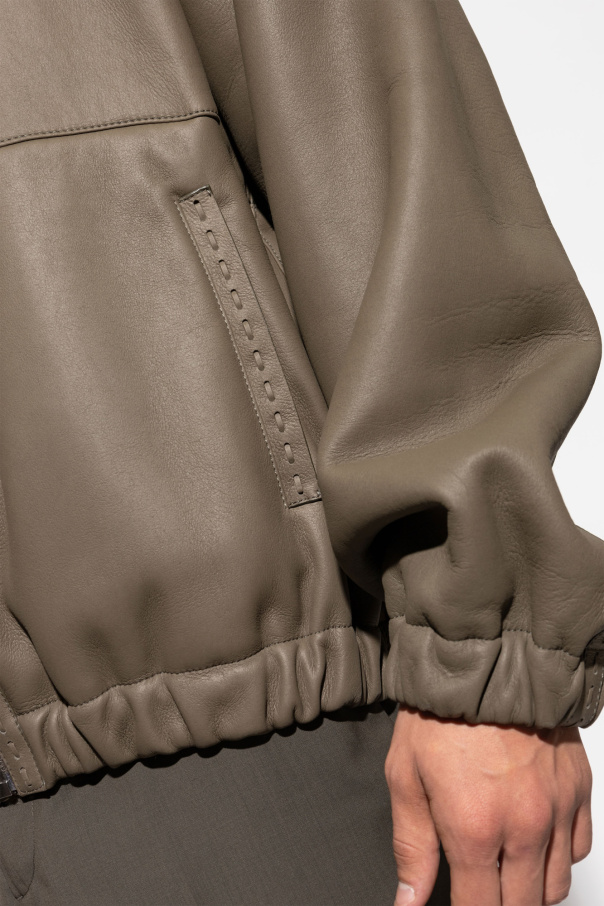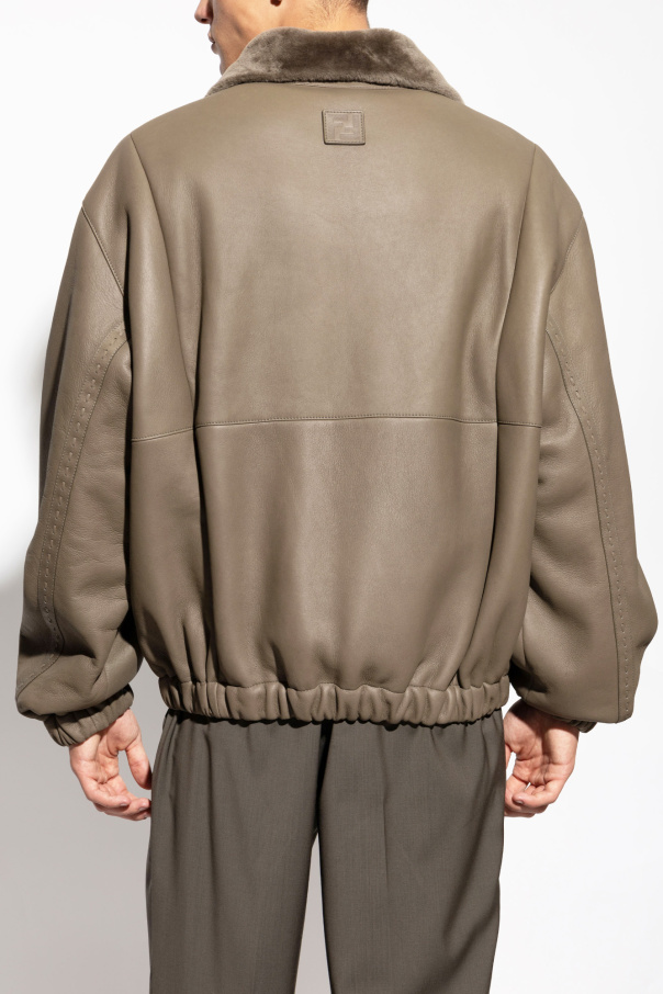 Introducing the Kożuch z kieszeniami by Fendi, an epitome of refined elegance and pragmatic design. This exquisite shearling jacket features a classic cut with gently rounded shoulders and straight, slightly loose sleeves finished with elasticated cuffs. Its cropped length, reaching the waist, lends a sporty yet sophisticated appearance. Crafted from premium lambskin leather, the jacket exudes a luxurious allure. The collar, adorned with soft fur, adds an extra layer of comfort and warmth. The robust and durable material is a hallmark of high-end designer attire. The meticulous attention to detail is evident in the metal zipper that runs the full length of the front, and the discreet zippered pockets on both sides ensure practicality without compromising style. Elasticated hems at the waist and cuffs provide enhanced wind protection, while the plush fur collar stands as a distinctive feature, offering both elegance and coziness. The dominant khaki green hue is understated yet versatile, effortlessly complementing various wardrobe pieces. A subtle designer logo patch at the back of the neck discreetly underscores the jacket's exclusivity. Why Choose This Product? Classic and versatile design High-quality lambskin leather for a luxurious feel Soft fur collar for added warmth and elegance Discreet zippered pockets for practicality Elasticated hems for superior wind protection Exclusively designed by Fendi